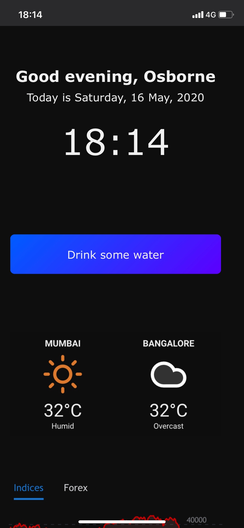 3rd version - includes a world clock for 6 global cities. This was the trickiest. First was getting a decent widget option that I could customise for my requirement. But was not able to find any. So I’ve hardcoded the timezones to keep updated at all times based on my device time.