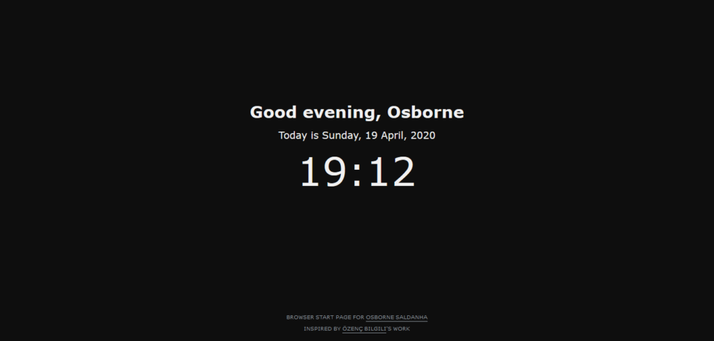 Obviously, I had an itch to upgrade this start page experience. There were a couple of things I wanted to do immediately: Add a greeting depending on time of day; add the day and date - to remind me what day it is in this lockdown; add the weather of a couple of locations and lastly a global clock.