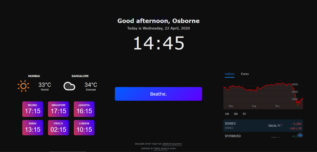 Earlier this year, I stumbled upon r/StartPages while researching for existing start page projects. That subreddit is glorious! So many projects to learn from and work with. I quickly scanned through it all and found a couple of projects that I really liked, suit my requirements and was quick to port for my own requirements.