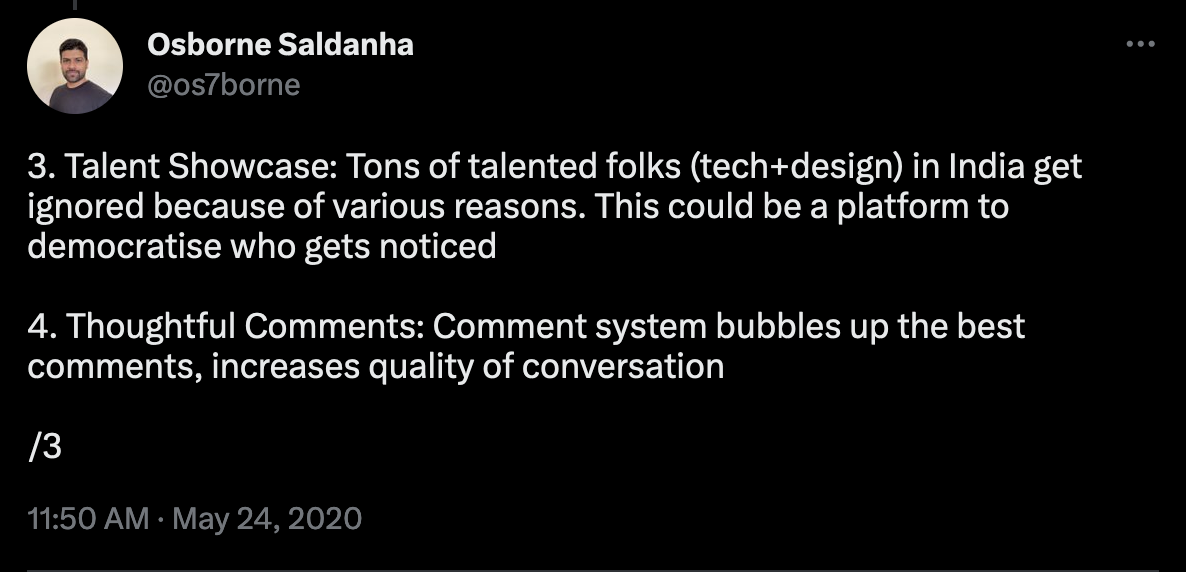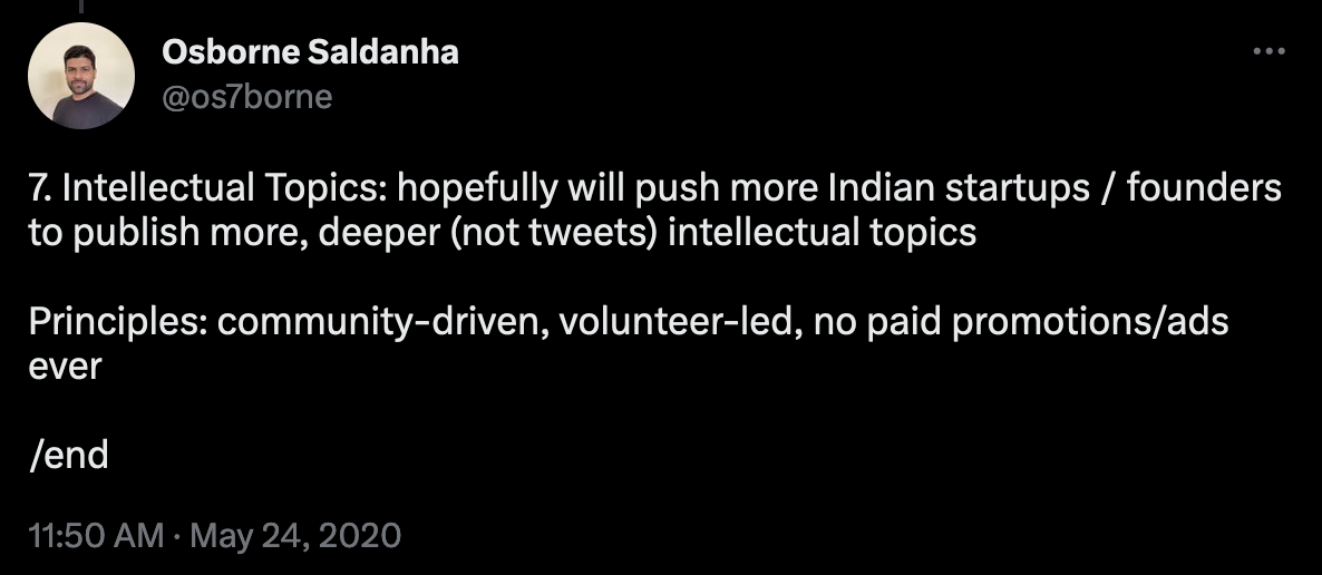 Since that tweet, I’ve been thinking about my next steps in making this platform a reality. Hopefully I should be able to launch something and it be THE platform for tech in India.